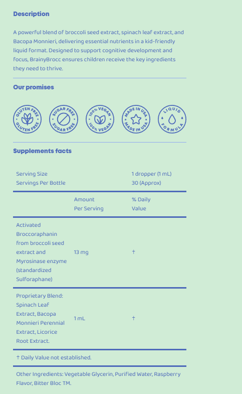 Ideal for kids with sensory issues or cognitive delays, BrainyBrocc delivers crucial sulforaphane and vital nutrients, naturally supporting neurodevelopment, stress management, and focus.